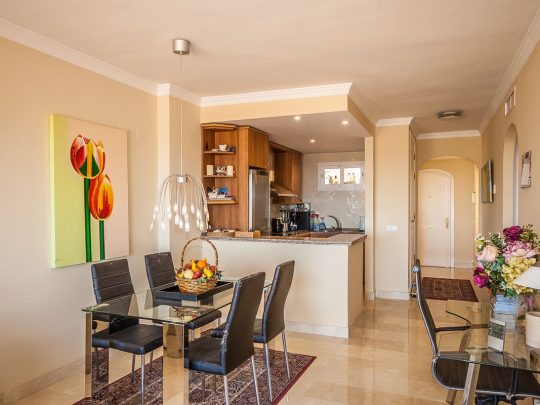 Stunning middle floor apartment located in the sought-after Elviria area. Boasting 2 spacious bedrooms and 2 modern bathrooms within a generous 90 m² layout, this fully furnished residence features a private 30 m² terrace perfect for soaking up the sun. The uncovered patio enjoys panoramic views of the sea, garden, and communal pool area. Enjoy the convenience of a gated complex with 24-hour security, along with amenities such as a lift, fitted wardrobes, marble flooring, and a fully equipped kitchen. With two private underground parking spaces and access to beautifully maintained communal gardens with outdoor swimming pools, this apartment offers both luxury and comfort in a vibrant urban setting.