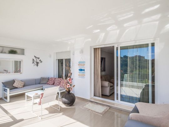 Nestled in the tranquil hills of La Mairena, this beautiful apartment offers a perfect blend of peace, comfort, and convenience. Just a 10-minute drive from the coast, it's ideally situated for those seeking both mountain serenity and easy access to amenities.The apartment features two spacious bedrooms and two bathrooms, including a master suite with an en-suite bathroom. The fully fitted kitchen comes with a practical utility area, while the bright and airy living spaces open onto a large terrace enclosed with glass curtains, where you can relax and take in extraordinary panoramic views of the surrounding landscape.