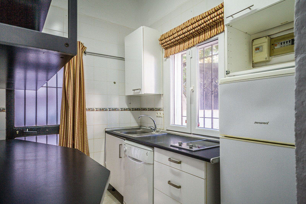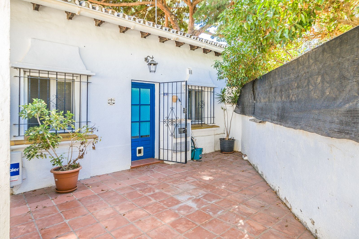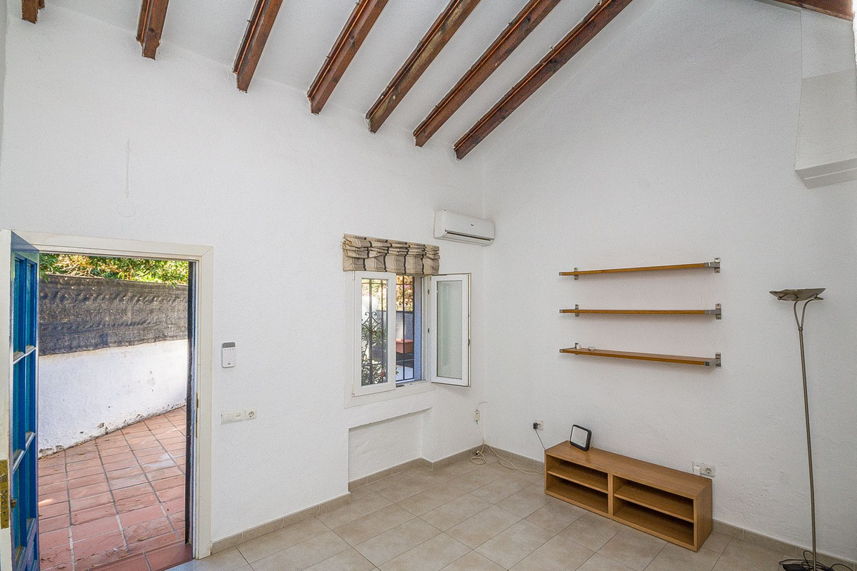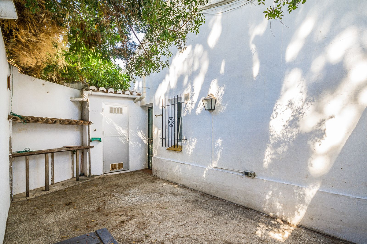 Charming Andalusian Home with exceptional Potential! The Pueblo Andaluz area is full of authentic character and traditional charm. With vaulted ceilings and exposed wooden beams, the home offers a unique Andalusian atmosphere. Featuring two bedrooms and one bathroom, a kitchen that opens onto a private patio, and a lounge with an additional patio on the entrance side. The property provides intimate yet versatile living spaces. While in need of refurbishment, it presents an excellent opportunity to create a personalized retreat. Perfectly positioned within walking distance of the beach and supermarket, the home is just 5 minutes from Marbella and 30 minutes from Málaga International Airport — making it an ideal holiday escape or investment opportunity.