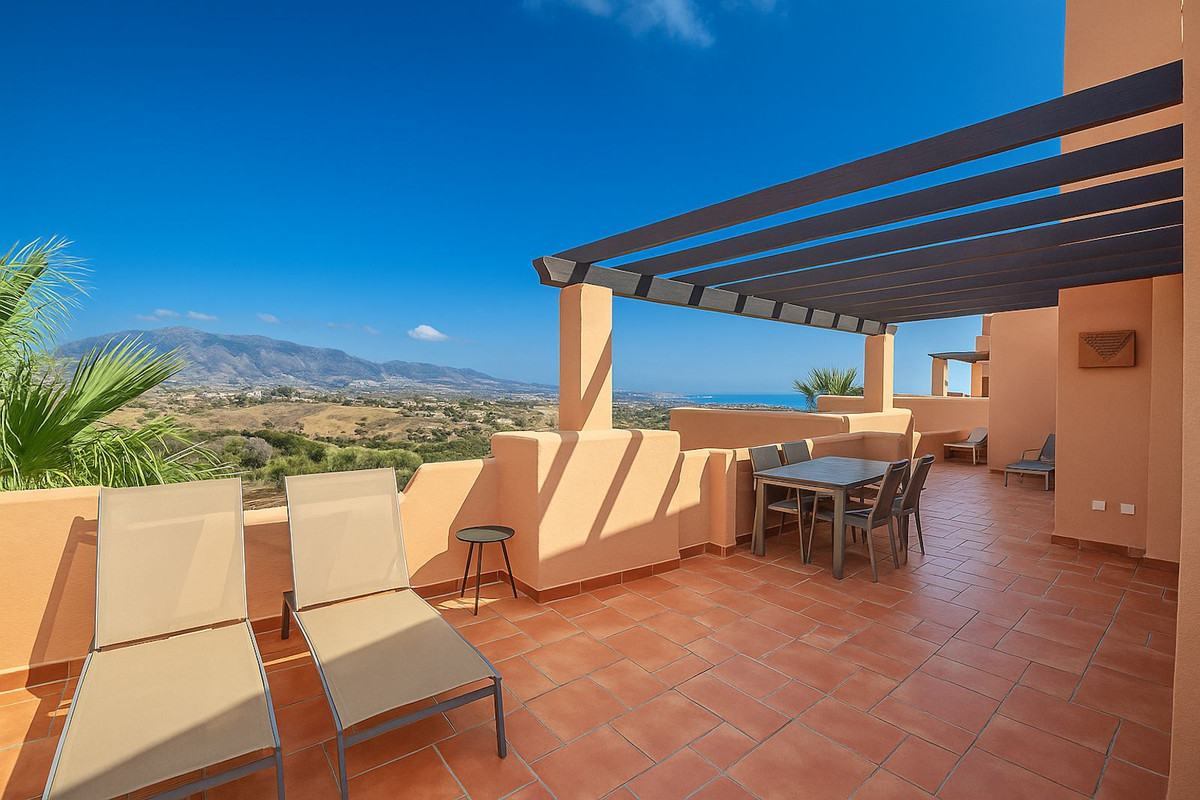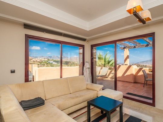 Stunning Penthouse in La Mairena. Discover this beautiful three-bedroom, two-bathroom penthouse located in the tranquil hills of La Mairena. Designed for comfort and style, it features a fully fitted kitchen, private parking space, and a storage room for added convenience. The apartment offers 120 m² of built space complemented by an impressive 70 m² terrace, ideal for enjoying outdoor living and the amazing panoramic views of the mountains and the sea. Set within a fully gated community, residents can enjoy several swimming pools, beautifully maintained gardens, and a peaceful natural setting. Despite its quiet rural mountain location, the property is just a 10-minute drive from the coast, local shops, and restaurants. The nearby clubhouse offers additional lifestyle amenities, including a golf course, restaurant, and gym — perfect for leisure and relaxation. This La Mairena penthouse combines the best of serene countryside living with easy access to the vibrant coastal life — an ideal home or holiday retreat on the Costa del Sol.