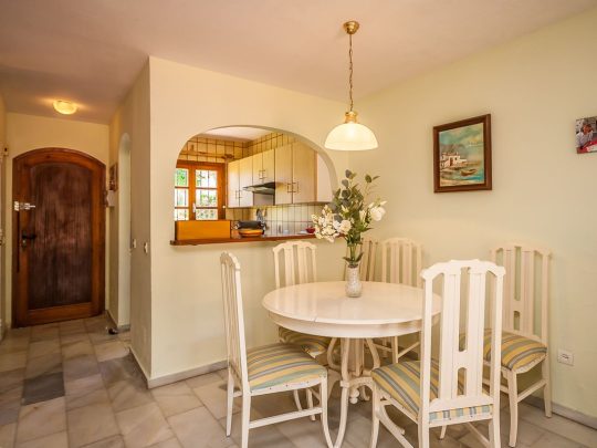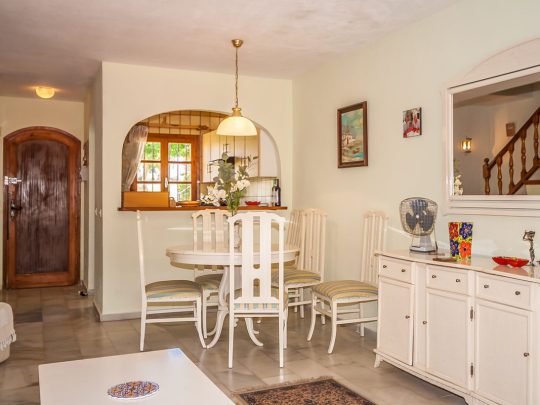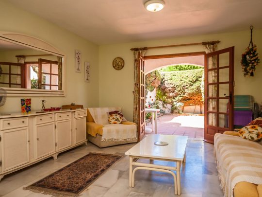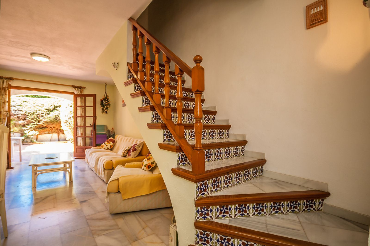 Lovely townhouse full of character in the heart of Elviria. Located just a 5-minute walk from the Elviria shopping center and a mere 10 minutes to the beach, this gated complex is perfect for families and golf enthusiasts alike. This charming 3-bedroom, 1-bathroom property spans 87 m² and offers a perfect blend of comfort and convenience. Enjoy a south-west orientation that fills your home with natural light, and take advantage of the communal pool and beautifully landscaped gardens. The ground floor features a fitted kitchen, a spacious lounge/dining area, and a sunny terrace ideal for relaxation. Upstairs, you'll find three well-appointed bedrooms and a bathroom. Don't miss the opportunity to make this delightful townhouse your new home!