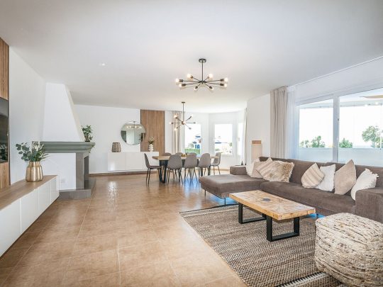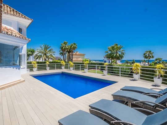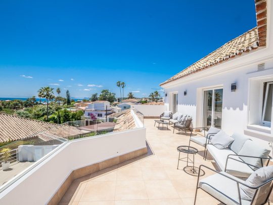 Discover your dream villa in the stunning Costa Del Sol, Estepona, perfectly situated close to the port and local shops within a desirable urbanization. This south-facing property boasts excellent condition and features a private pool, offering breathtaking views of the sea and mountains. Enjoy luxurious amenities including a covered terrace, fitted wardrobes, a private terrace, a gym, and a games room. The villa also includes a utility room, ensuite bathrooms, double glazing, and a spacious basement. With optional furniture, a fully fitted kitchen, and private garden, this investment opportunity is ideal for those seeking luxury living. Additional conveniences include underground parking and open spaces, making this villa a perfect option for families or investors.